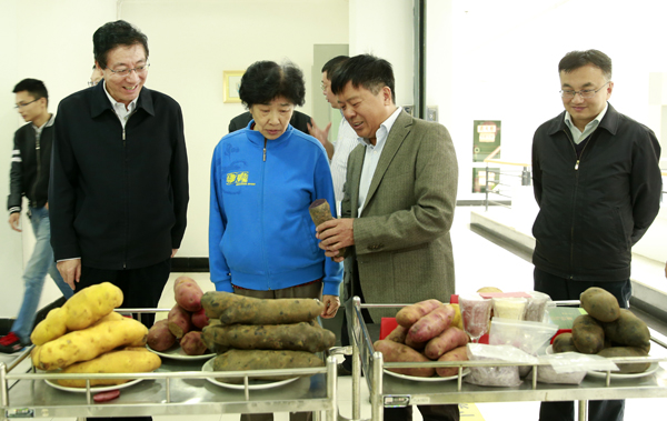 10月19日,十一届全国政协副主席、中国科学院院士王志珍来我室考察调研,校长孙其信、校党委副书记吕卫东陪同考察。康振生主任介绍了实验室研究方向与内容、人才培养与团队建设、平台建设与国际合作、科研进展与社会服务等情况。考察期间,王志珍院士听取了我室陈勤教授关于彩色马铃薯育种情况的汇报。